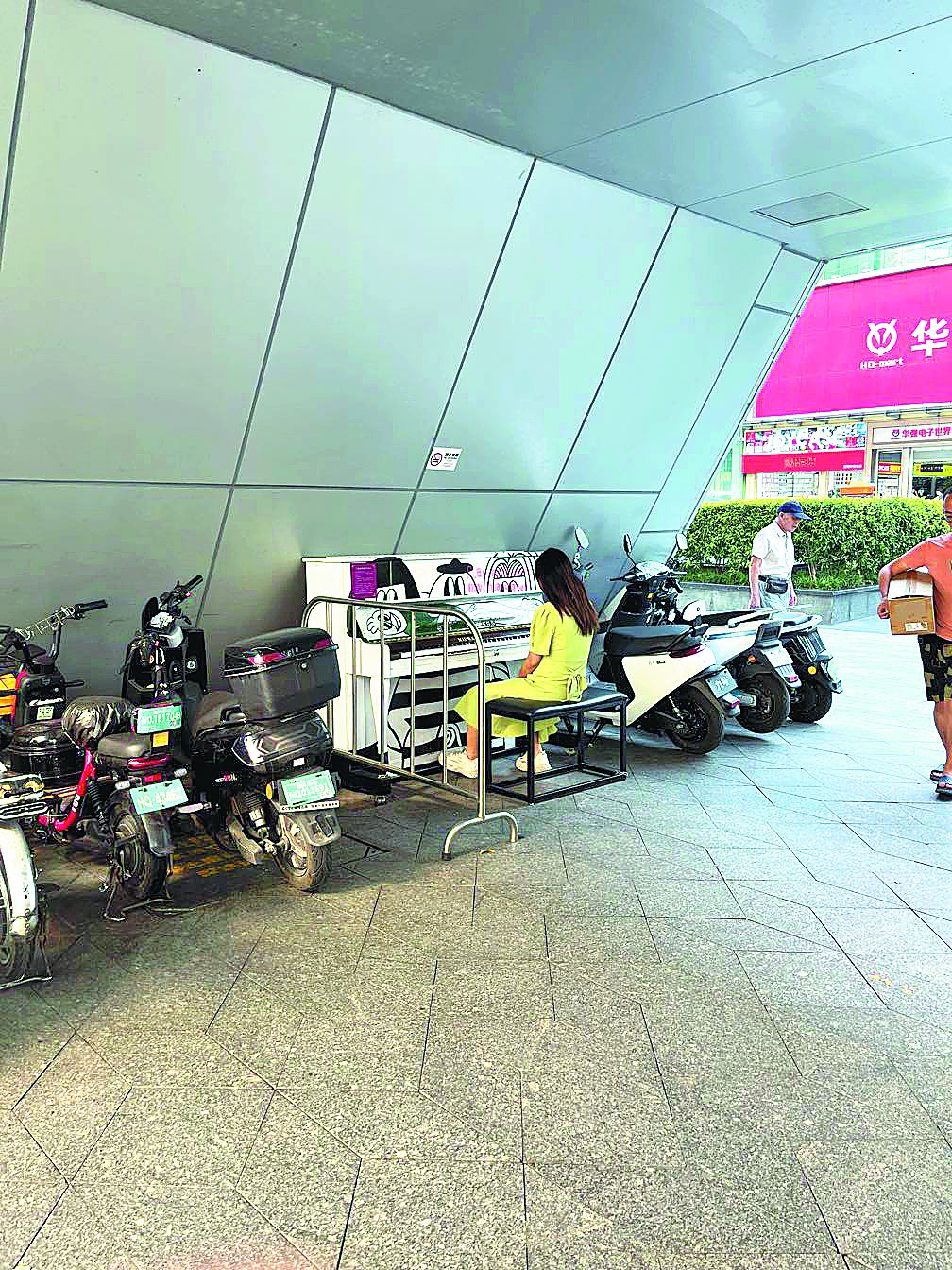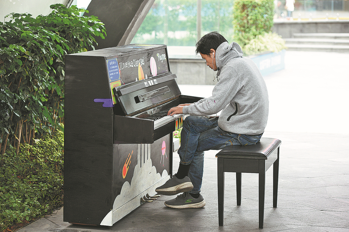 Piano is played on a street in Huaqiangbei, Shenzhen, Guangdong province. YI YANG/FOR CHINA DAILY
