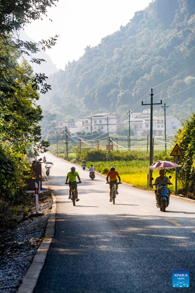 Enthusiasts ride bicycles in Guilin, south China's Guangxi Zhuang Autonomous Region, Sept. 6, 2023. (Xinhua/Hu Xingyu)