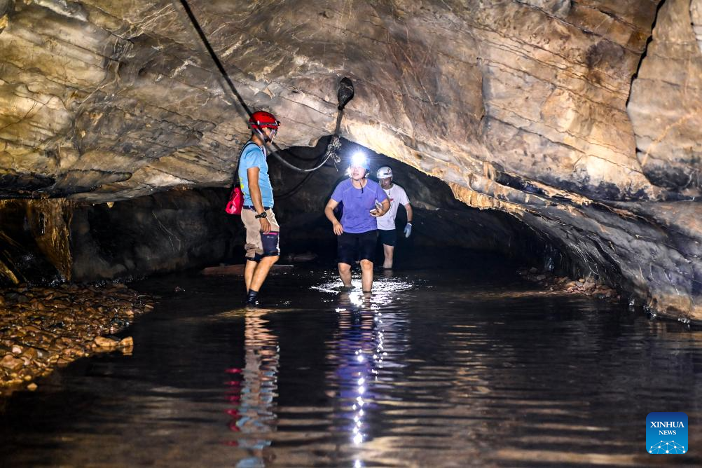 Tourists explore a cave in Guilin, south China's Guangxi Zhuang Autonomous Region, Sept. 6, 2023. (Xinhua/Cao Yiming)