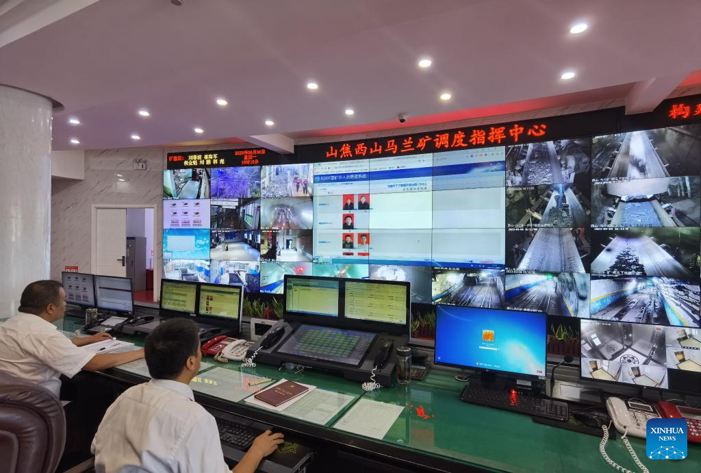 Staff members work at the command center of Malan coal mine of Shanxi Coking Coal Xishan Coal Electricity Group Co., Ltd. in Gujiao City, north China's Shanxi Province, Sept. 4, 2023. (Xinhua/Wang Xuetao)
