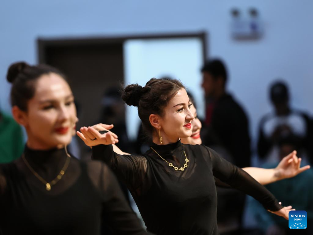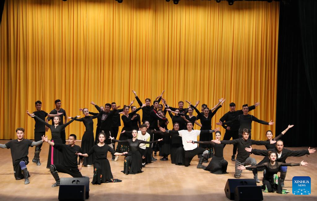 Artists of a local art troupe rehearse a dance in Taxkorgan Tajik Autonomous County, northwest China's Xinjiang Uygur Autonomous Region, Sept. 4, 2023. Taxkorgan Tajik Autonomous County has made great efforts in the integration of local culture and tourism in recent years, enriching the cultural life of people and promoting foreign exchanges. The county also carries forward traditional Chinese culture to build cultural tourism festivals, which shows the scenery of the Pamir Plateau and the happy and stable life of the people. (Xinhua/Lan Hongguang)