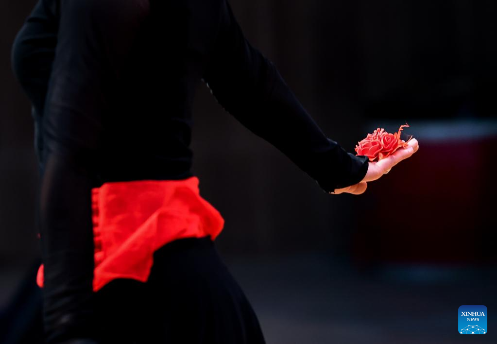 Artists of a local art troupe rehearse a dance in Taxkorgan Tajik Autonomous County, northwest China's Xinjiang Uygur Autonomous Region, Sept. 7, 2023. Taxkorgan Tajik Autonomous County has made great efforts in the integration of local culture and tourism in recent years, enriching the cultural life of people and promoting foreign exchanges. The county also carries forward traditional Chinese culture to build cultural tourism festivals, which shows the scenery of the Pamir Plateau and the happy and stable life of the people. (Xinhua/Hu Huhu)