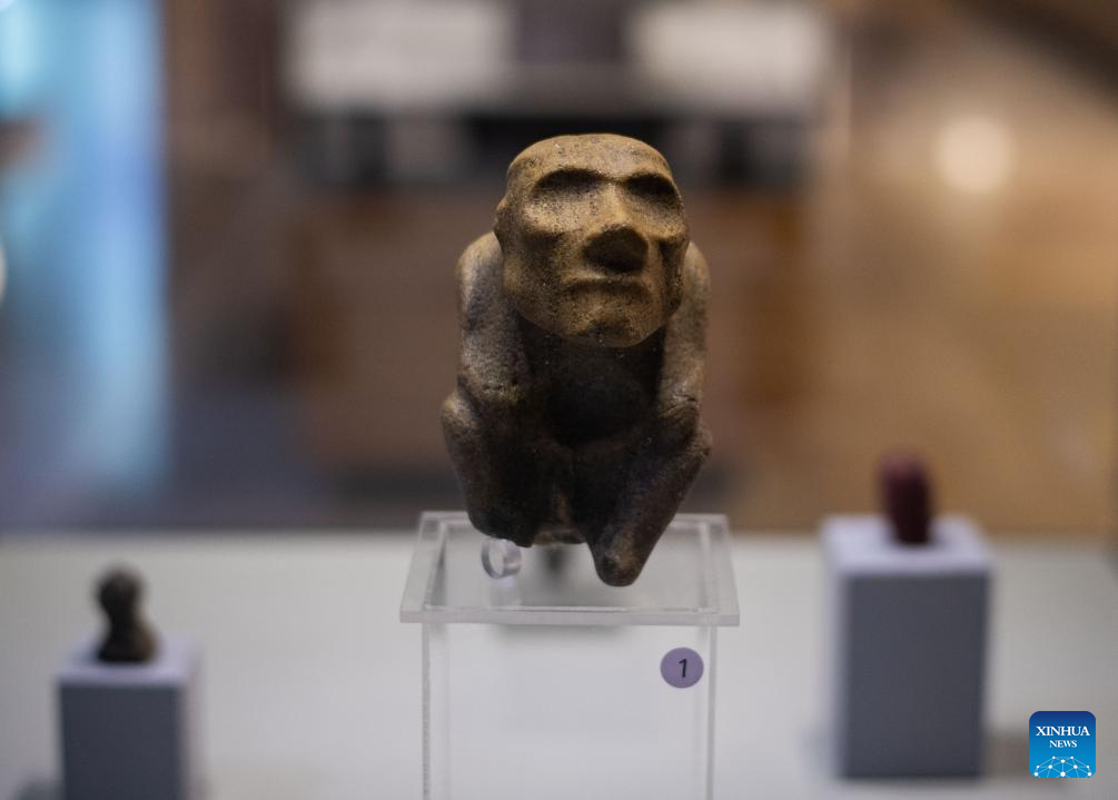 This photo taken on Sept. 8, 2023 shows part of collections displayed at the National Museum of the Republic of Kazakhstan in Astana, Kazakhstan. The National Museum of the Republic of Kazakhstan established in July 2014 is one of the largest museums in central Asia. It contains seven halls with a total exhibition area of 14,000 square meters. (Xinhua/Li Muzi)