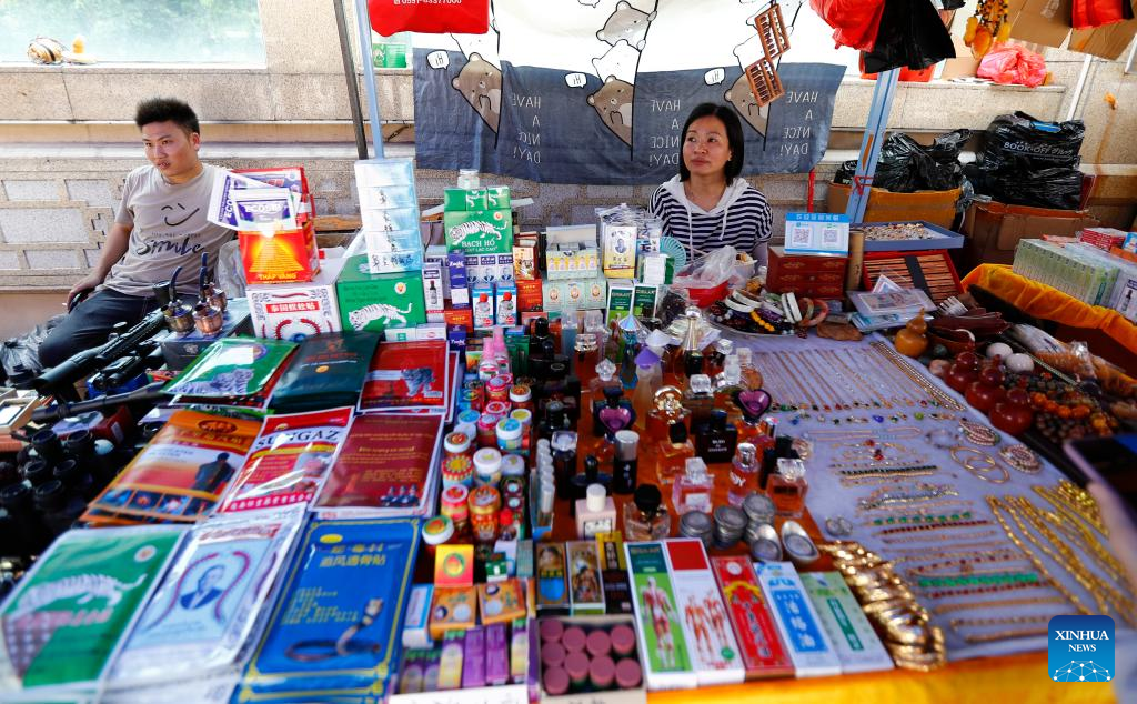 Vendors sell goods from Southeast Asian countries in Dongxing, south China's Guangxi Zhuang Autonomous Region, May 18, 2023.