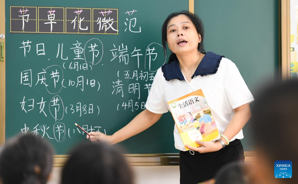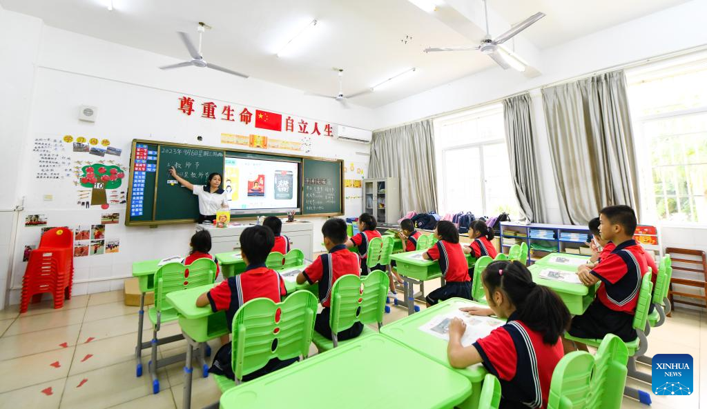 Fu Yaohui gives a class at Hainan (Haikou) Special School in Haikou, south China's Hainan Province, Sept. 5, 2023. (Xinhua/Yang Guanyu)