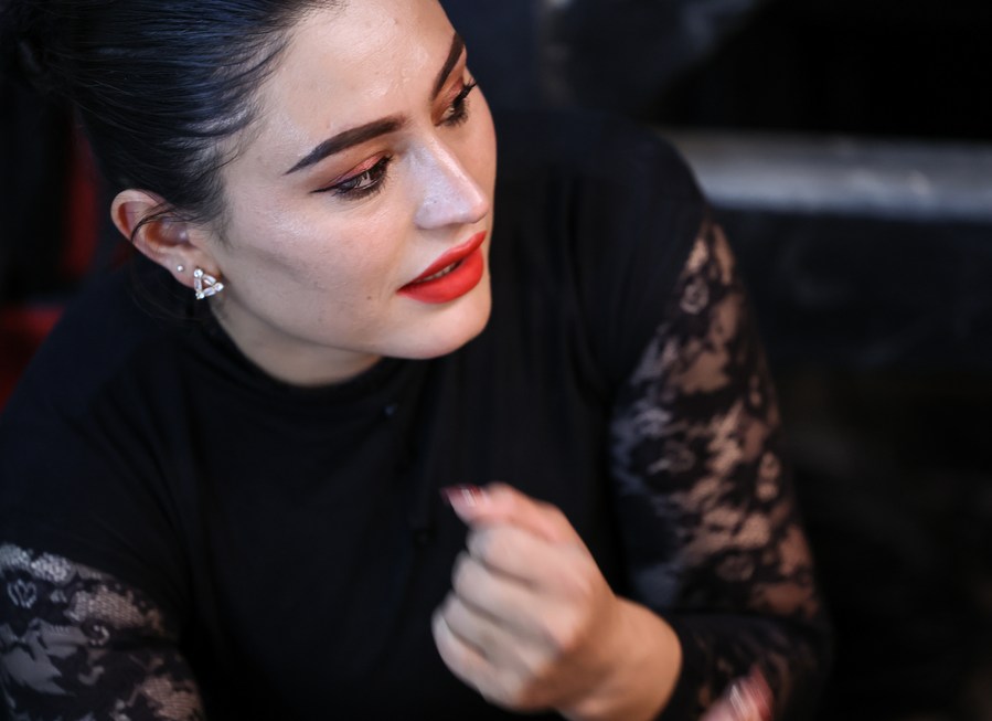 Gulbanur Kurqak, a dancer of a local art troupe, rehearses a dance in Taxkorgan Tajik Autonomous County, northwest China's Xinjiang Uygur Autonomous Region, Sept. 4, 2023. (Xinhua/Lan Hongguang)