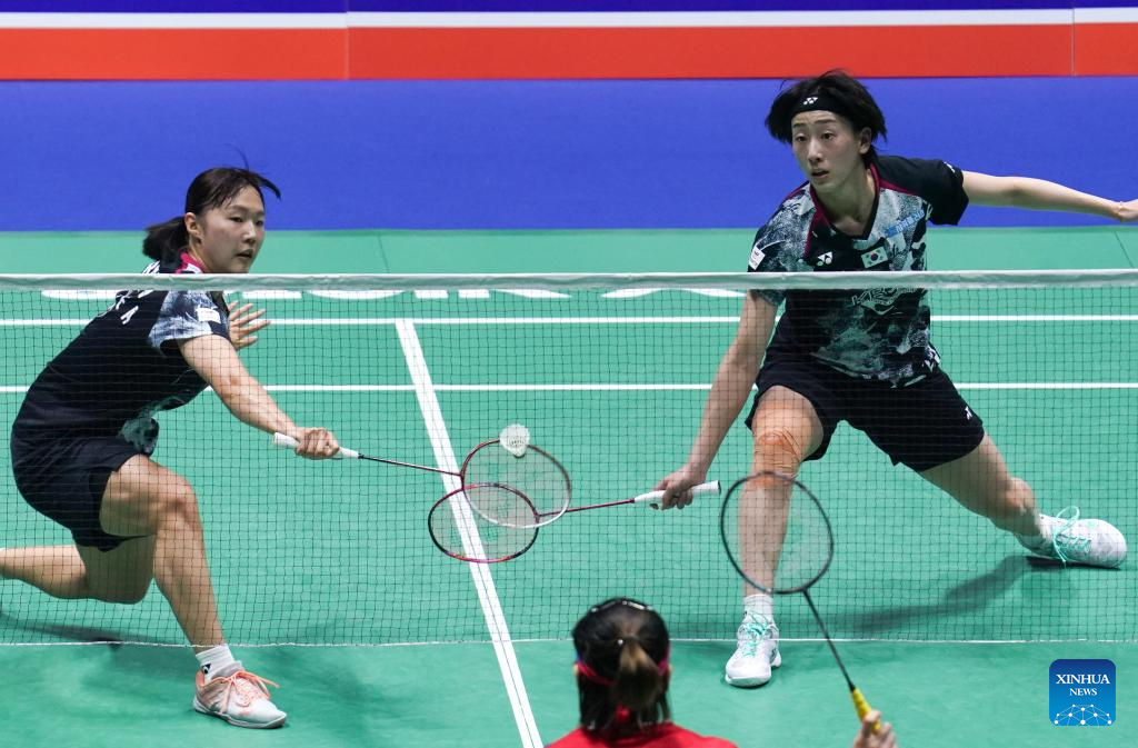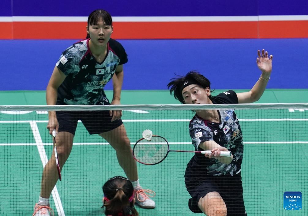 Baek Ha Na/Lee So Hee (R) of South Korea compete during the women's doubles final between Chen Qingchen/Jia Yifan of China and Baek Ha Na/Lee So Hee of South Korea at the 2023 China Open badminton tournament in Changzhou, east China's Jiangsu Province, Sept. 10, 2023. (Xinhua/Li Bo)