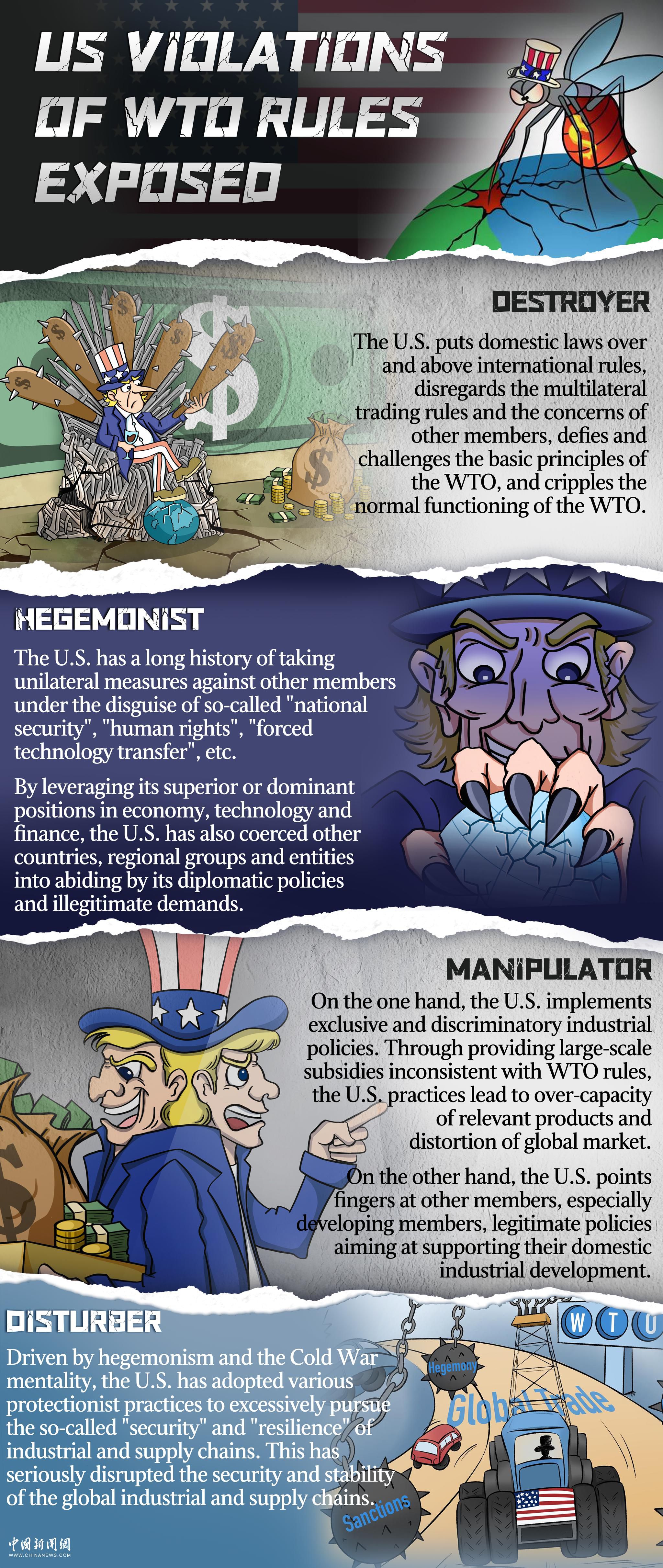 The United States has taken a series of unscrupulous actions, disrupting the international market order, severely impacting market confidence, and causing serious harm to the world economy. The US has become a saboteur of the multilateral trading system, a manipulator applying double standards in industrial policies, a disruptor of global industrial and supply chains and an expert of unilateralism and bullying.