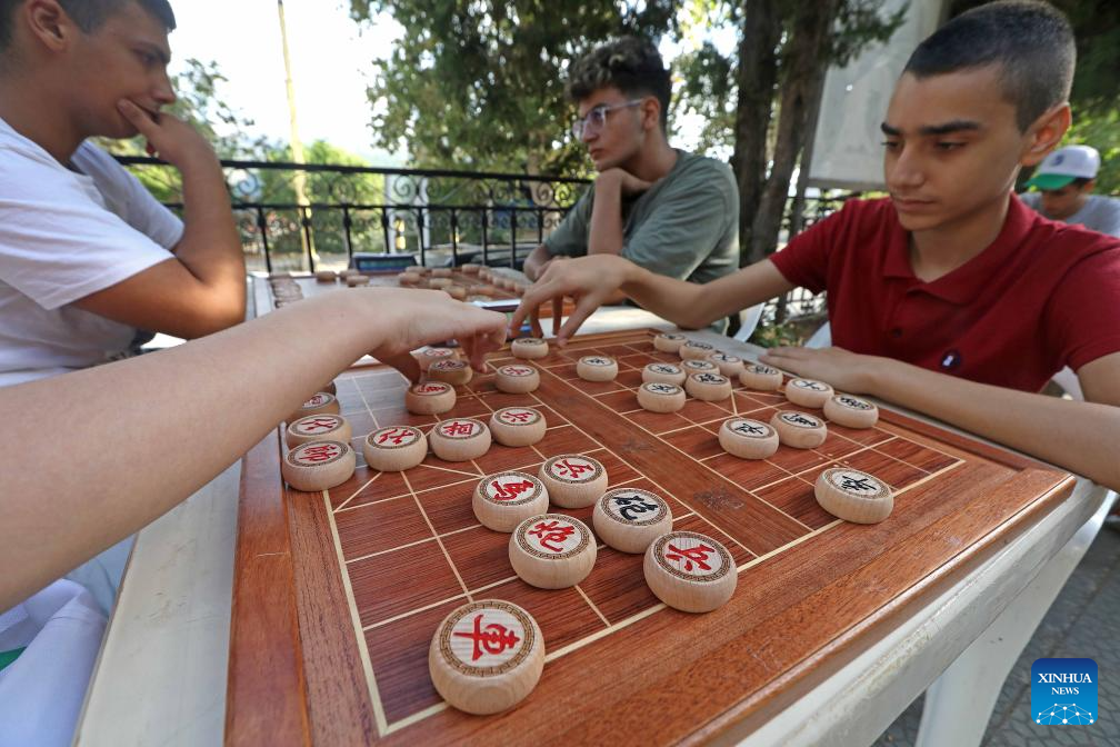 Young participants compete during the Lebanese-Chinese XiangQi Friendship Championship in Deir el Qamar, Mount Lebanon Governorate, Lebanon, on Sept. 10, 2023. A competition for Chinese chess, called XiangQi, organized by the XiangQi Committee in Lebanon, was held on Sunday in Deir el Qamar, a historic town in southern-central Lebanon, attracting about 70 Lebanese and Chinese fans of all ages. (Xinhua/Bilal Jawich)