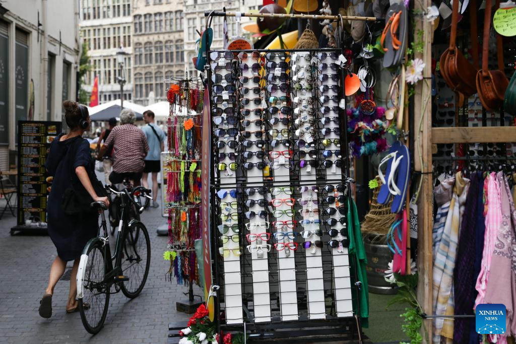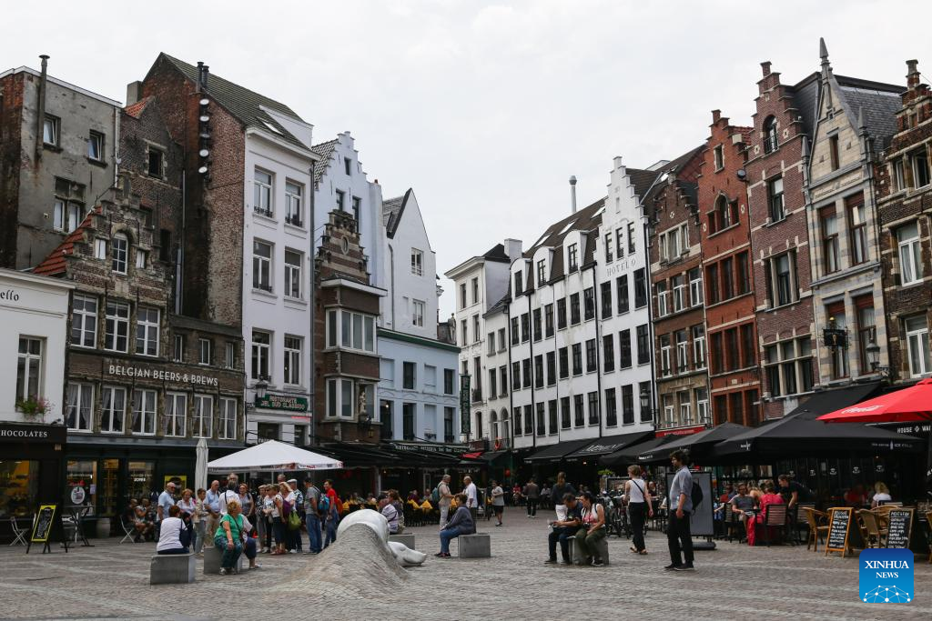 People are seen on a street in central Antwerp, Belgium, on Sept. 11, 2023. The European Commission cut the European Union's and the eurozone's 2023 economic growth forecast on Monday. (Xinhua/Zheng Huansong)