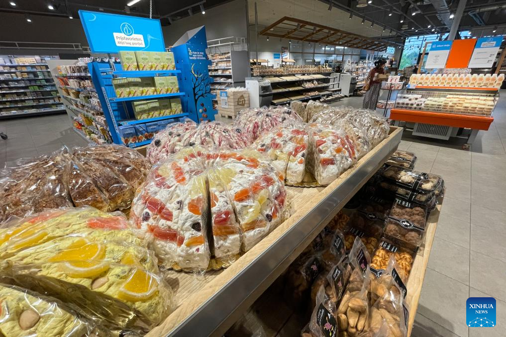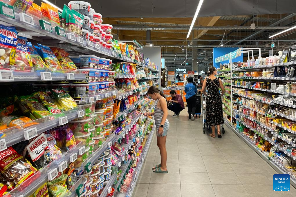 Customers select products at a supermarket in Mechelen, Belgium, on Sept. 11, 2023. The European Commission cut the European Union's and the eurozone's 2023 economic growth forecast on Monday. (Xinhua/Zheng Huansong)