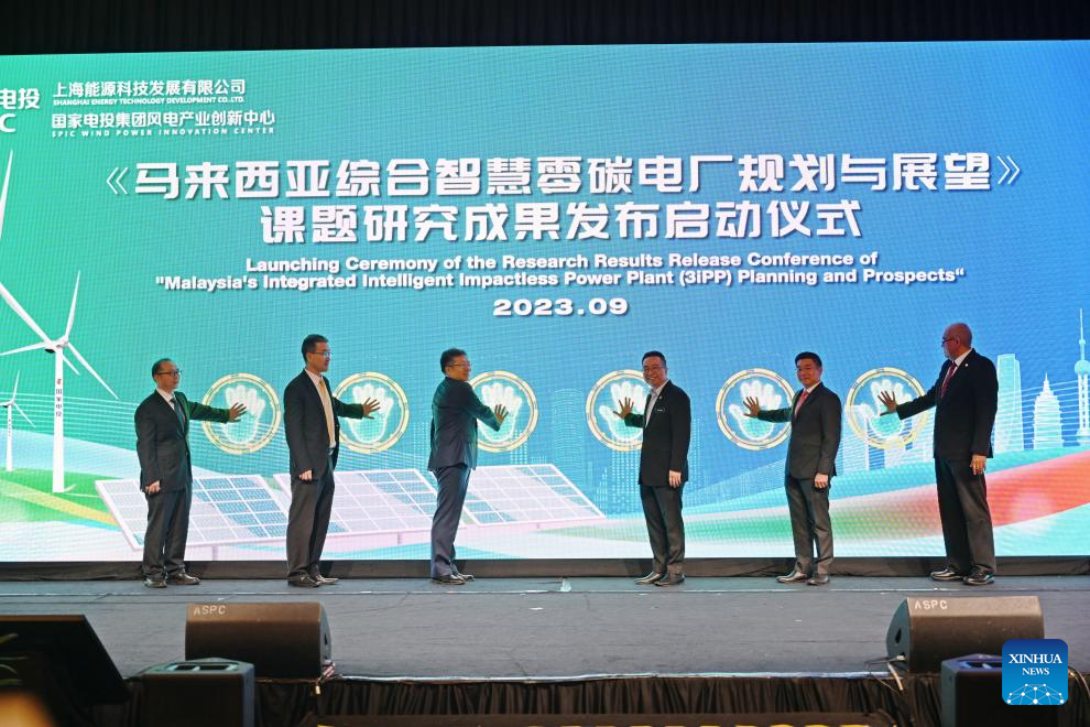 Launching ceremony of the research results release conference of "Malaysia's Integrated Intelligent Impactless Power Plant (3iPP) Planning and Prospects" is held during the 2023 China-Malaysia Integrated Intelligent Impactless Power Plant (3iPP) Development Forum in Kuala Lumpur, Malaysia, Sept. 11, 2023. (Xinhua/Cheng Yiheng)