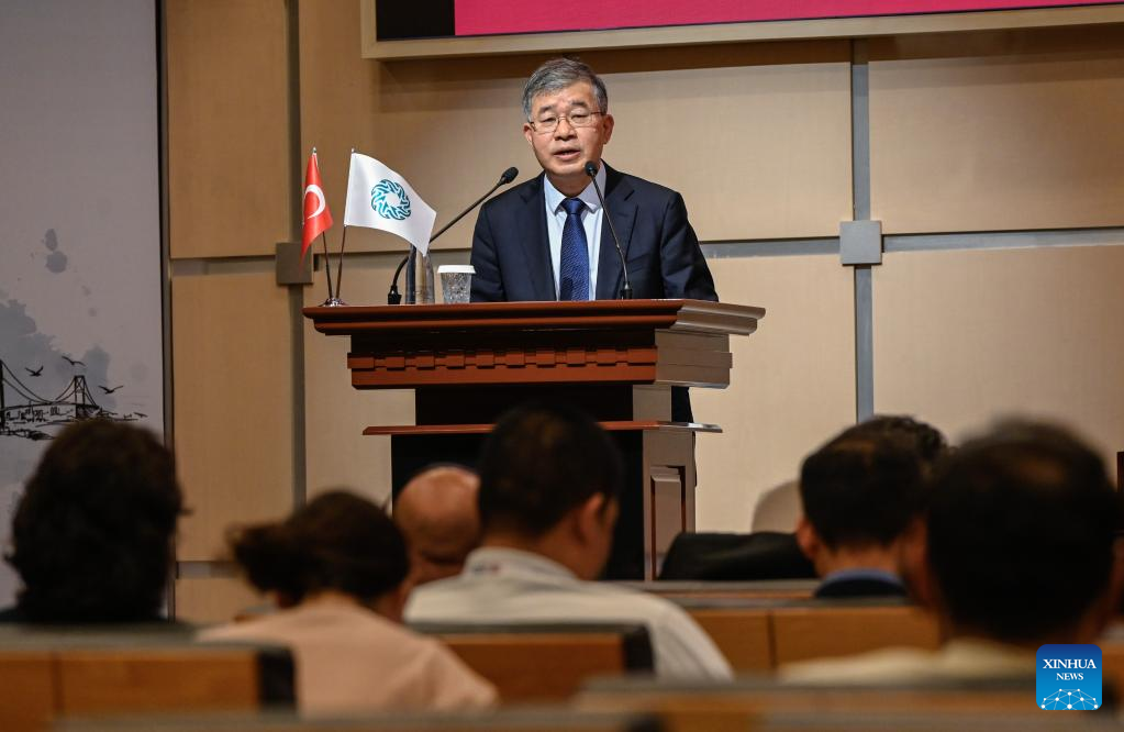 Chu Shijia, director general of the China Foreign Trade Center, speaks at the promotion of the upcoming 134th Canton Fair, in Istanbul, Trkiye, Sept. 11, 2023. Turkish business leaders in Istanbul were introduced to the upcoming China Import and Export Fair, commonly known as the Canton Fair, during an event on Monday. (Photo by Omer Kuscu/Xinhua)