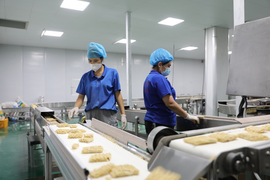 Employees work at a food processing company in Kashgar, northwest China's Xinjiang Uygur Autonomous Region, Sept. 11, 2023. (Photo by Nurmemet Qasim/Xinhua)