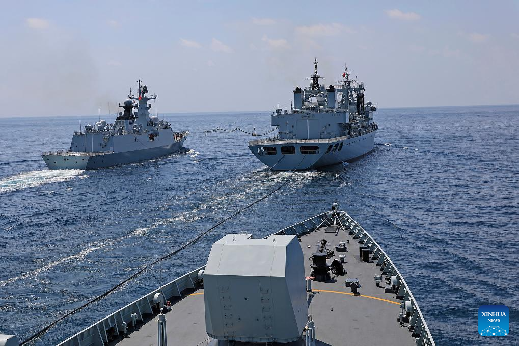 The 45th fleet of the Chinese People's Liberation Army (PLA) Navy for an escort mission in the Gulf of Aden and the waters off Somalia carries out training on Aug. 24, 2023. (Photo by Wang Yuanfang/Xinhua)