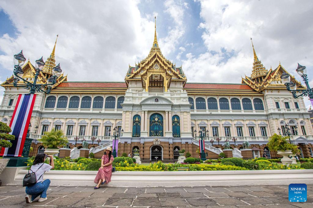 Tourists take photos at the Grand Palace scenic spot in Bangkok, Thailand, June 15, 2023.?(Xinhua/Wang Teng)