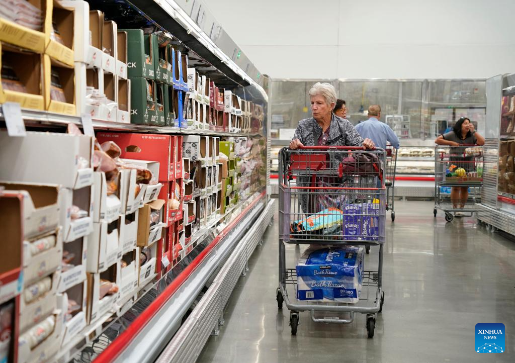 Customers shop at a supermarket in Foster City, California, the United States, Sept. 13, 2023. The U.S. Department of Labor reported Wednesday that U.S. consumer price index (CPI), a key gauge of inflation, rose 0.6 percent in August, its biggest monthly gain in 2023; and 3.7 percent from a year ago. (Photo by Li Jianguo/Xinhua)