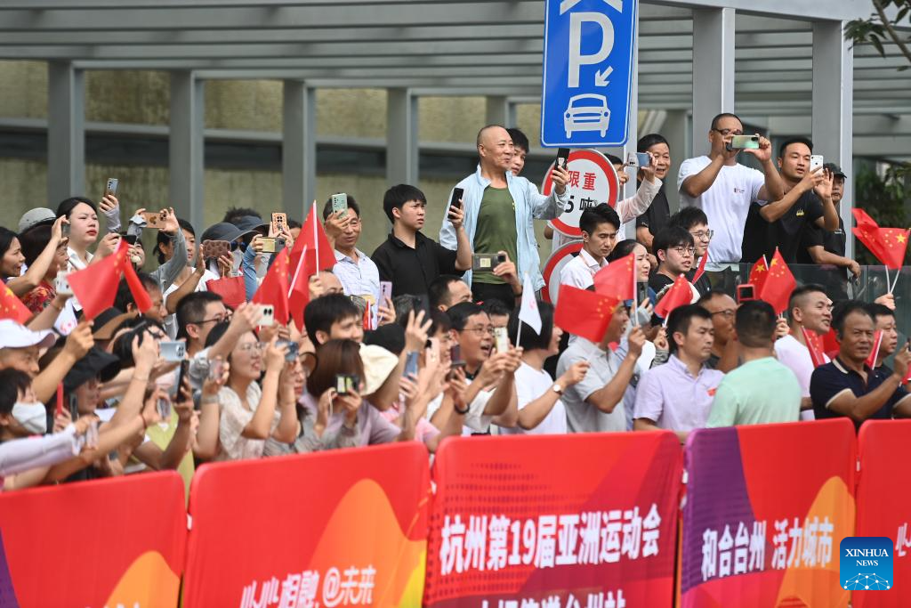 People watch during the torch relay of the 19th Asian Games in Taizhou, east China's Zhejiang Province, Sept. 14, 2023. (Xinhua/Huang Zongzhi)