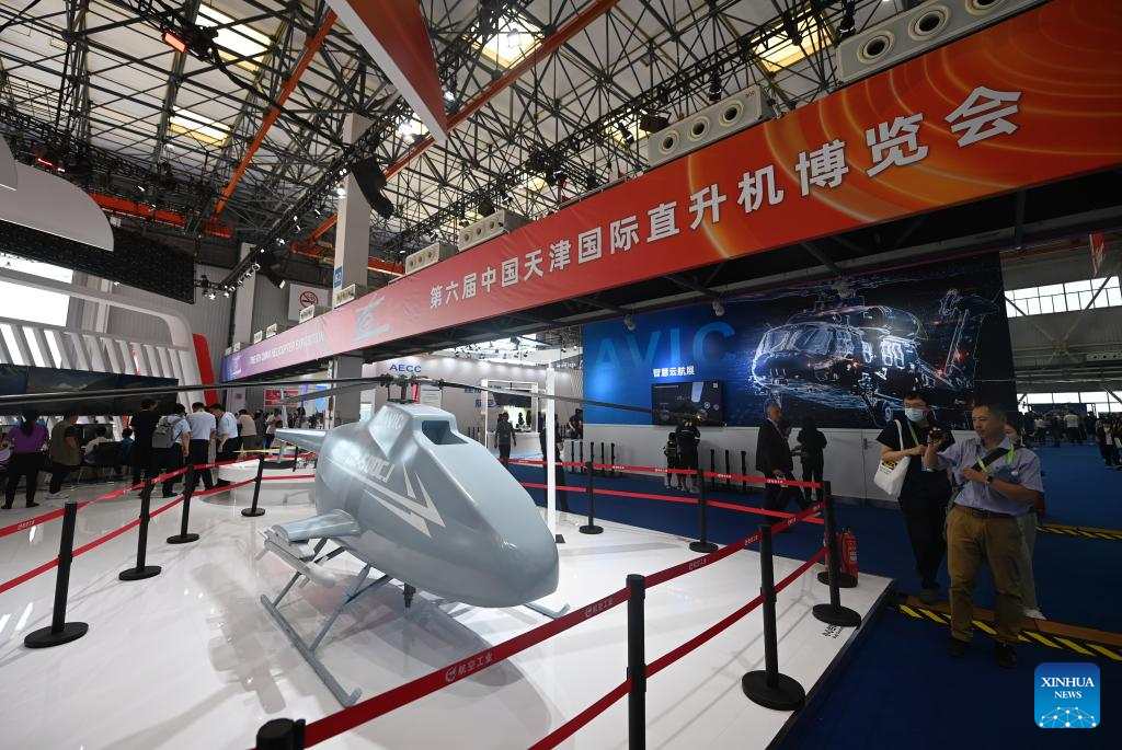People visit the 6th China Helicopter Exposition in north China's Tianjin Municipality, Sept. 14, 2023. (Xinhua/Zhao Zishuo)