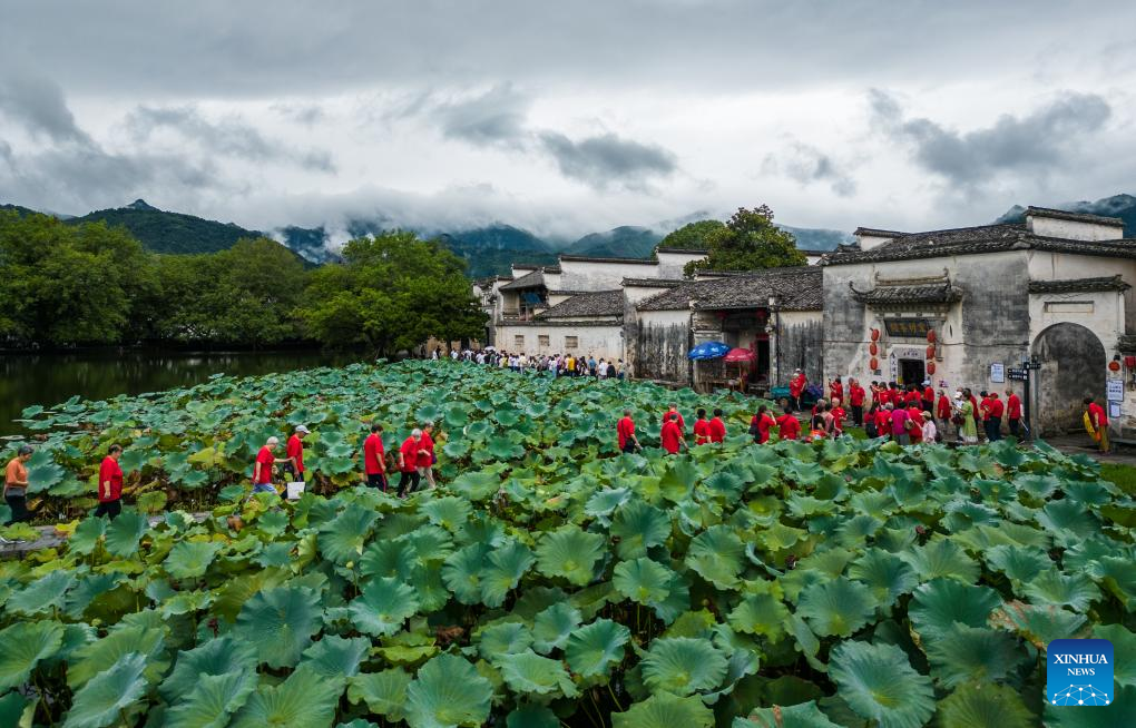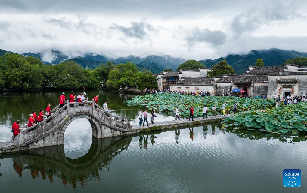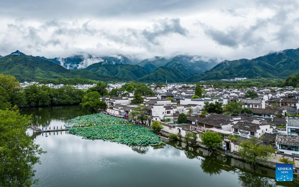 This aerial photo taken on Sept. 13, 2023 shows the Hongcun Village in Yixian County, Huangshan City of east China's Anhui Province. (Xinhua/Guo Chen)