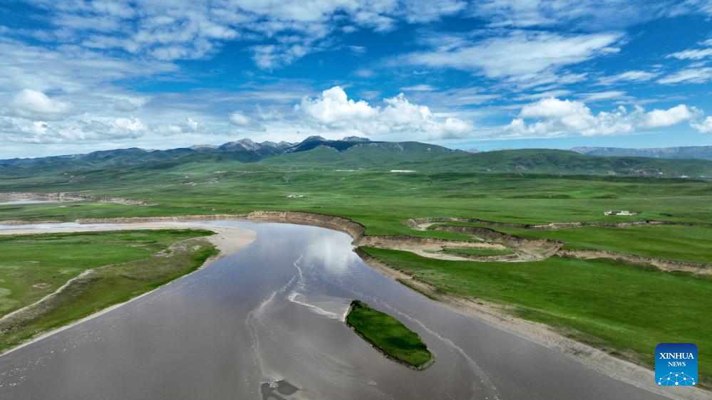 This aerial photo taken on July 6, 2023 shows the scenery along the Yellow River in Maqu County, Gannan Tibetan Autonomous Prefecture of northwest China's Gansu Province.