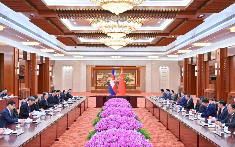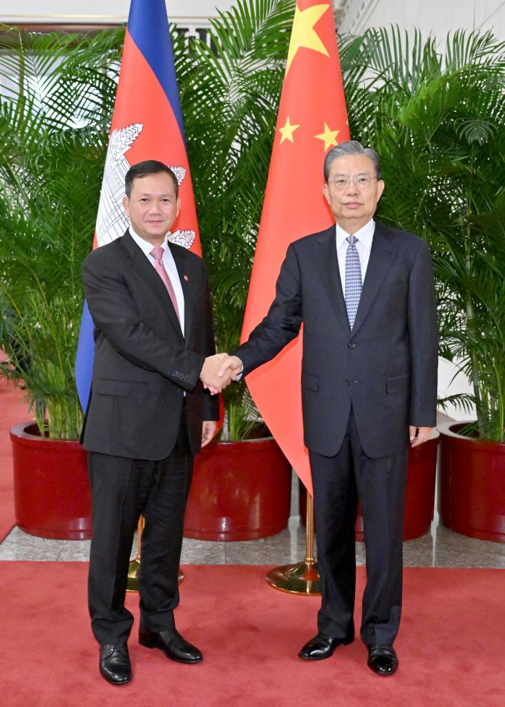 Zhao spoke highly of good neighborliness and lasting friendship enjoyed by China and Cambodia. He told Hun Manet how China has unswervingly followed the whole-process people's democracy and a development path suited to China's national conditions. He stressed that China respects and supports the democratic path chosen by the Cambodian people.