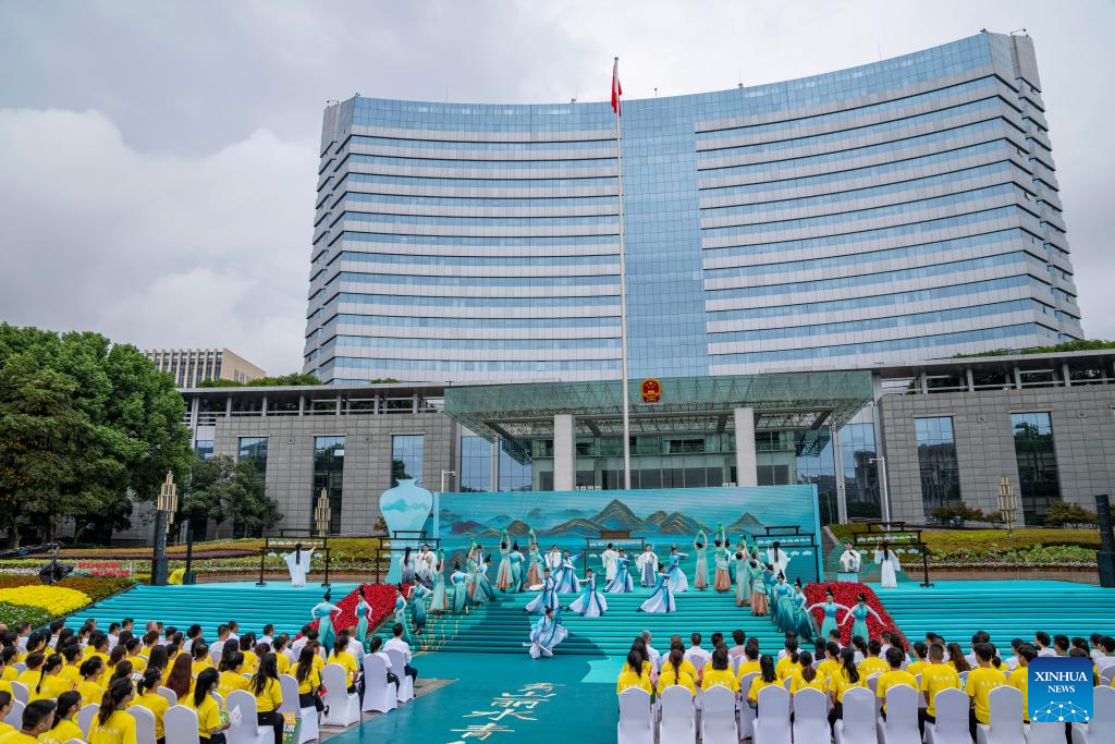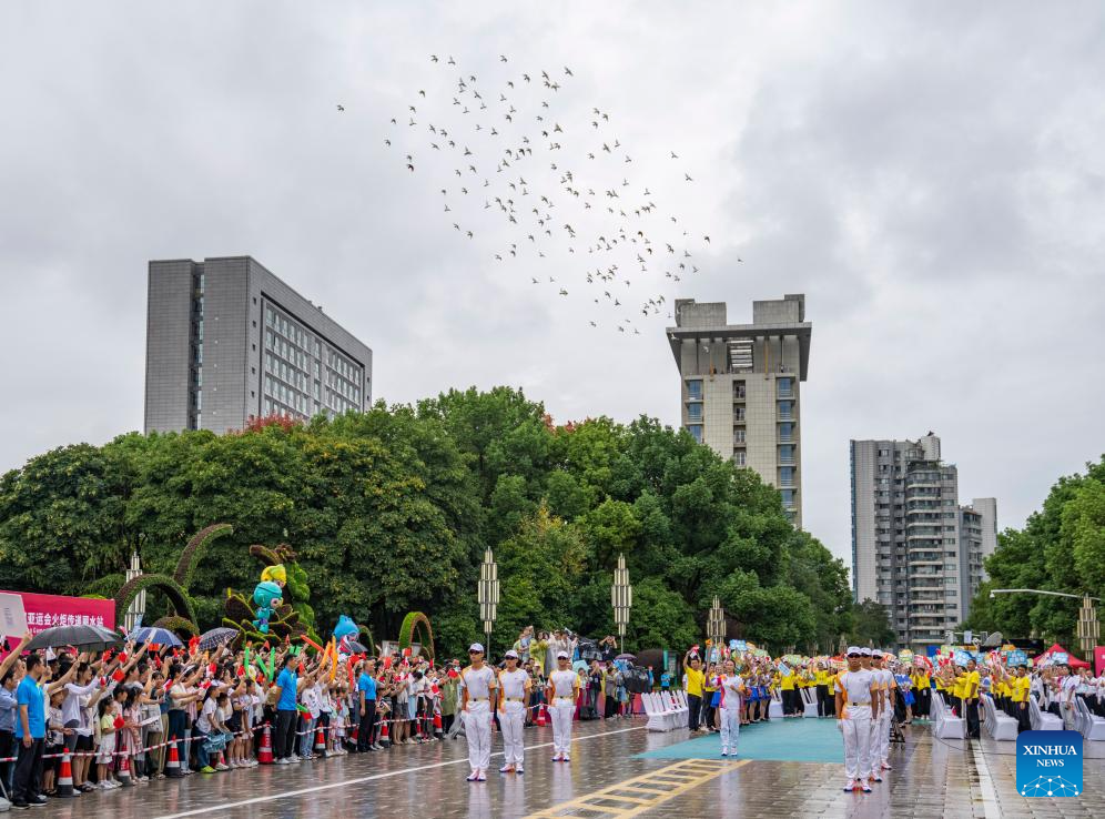 Photo shows the starting ceremony of the torch relay of the 19th Asian Games in Lishui, east China's Zhejiang Province, Sept. 16, 2023. (Xinhua/Sun Fei)