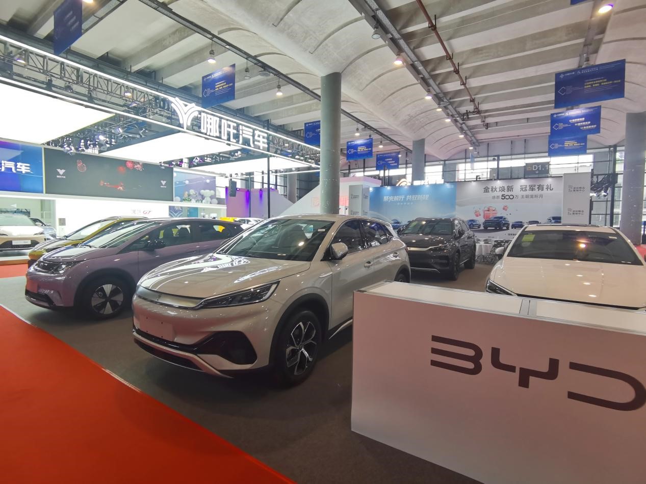 A photo taken on Sept. 16, 2023, displays China’s New Energy Vehicles (NEVs) at the 20th China-ASEAN Expo in Nanning, south China’s Guangxi Zhuang Autonomous Region. (People’s Daily Online/Zhang Kaiwei)