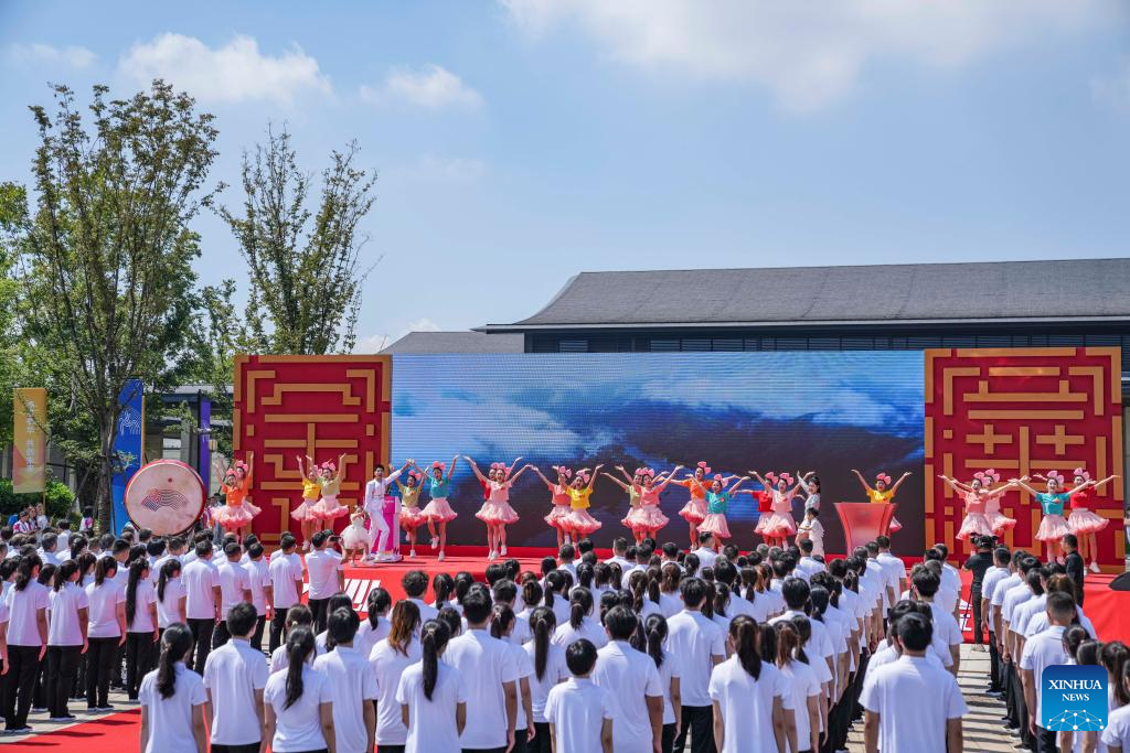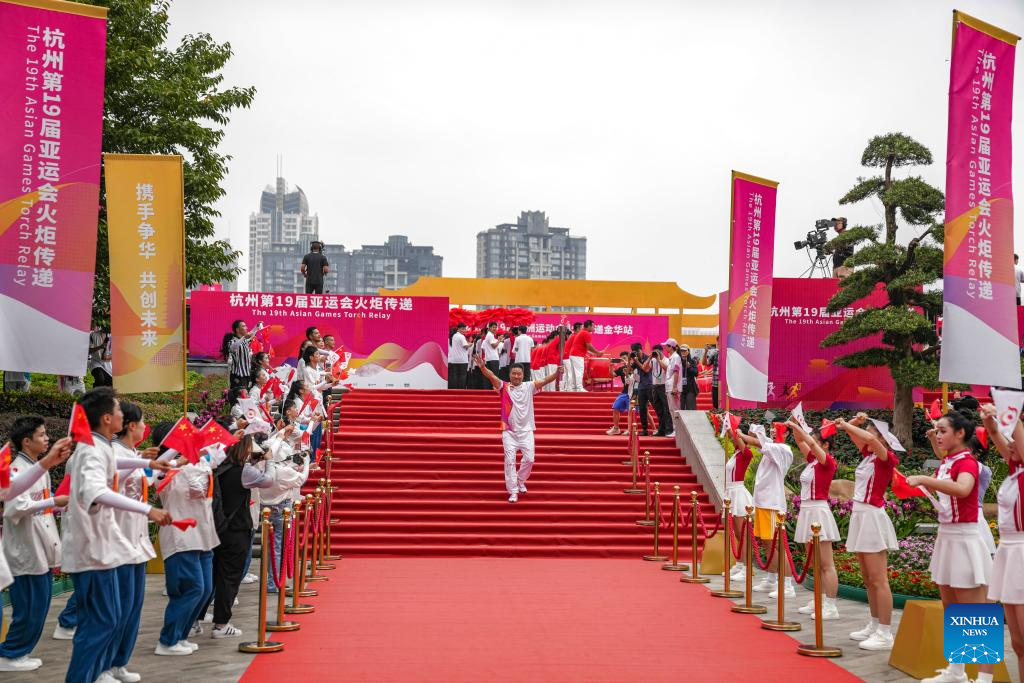 The starting ceremony of the torch relay of the 19th Asian Games in Jinhua is held in Jinhua, east China's Zhejiang Province, Sept. 17, 2023. (Xinhua/Sun Fei)
