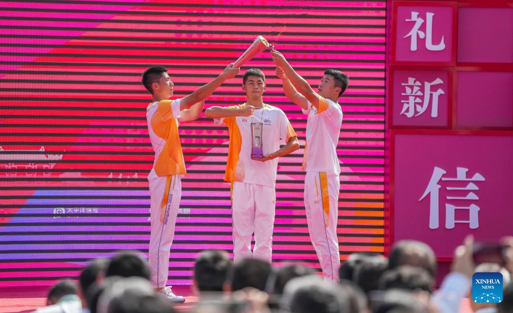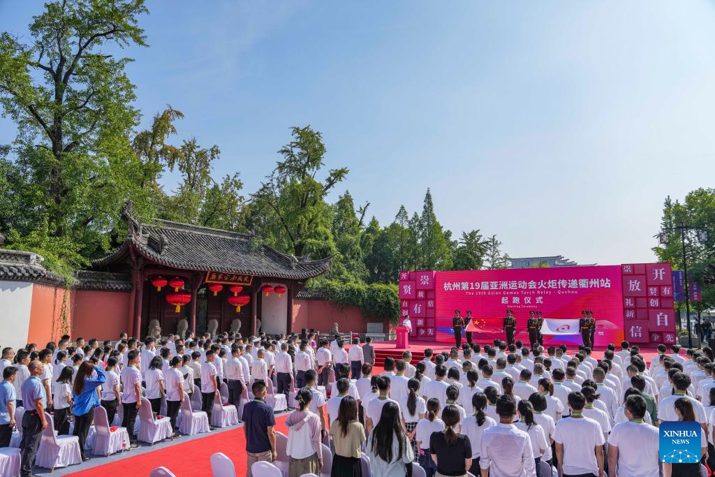 The photo taken on Sept. 19, 2023 shows the starting ceremony of the the torch relay of the 19th Asian Games in Quzhou, east China's Zhejiang Province. (Xinhua/Sun Fei)