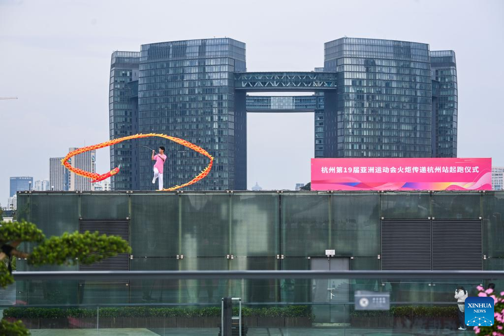 An artist performs during the torch relay of the 19th Asian Games in Hangzhou, capital of east China's Zhejiang Province, Sept. 20, 2023. (Xinhua/Xu Yu)