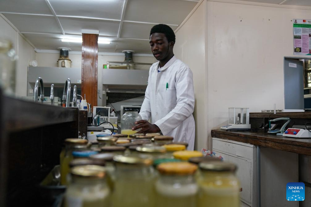 A Kenyan graduate student works at the China-Kenya Belt and Road Joint Laboratory on Crop Molecular Biology at Egerton University in Nakuru County, Kenya, on Sept. 18, 2023. (Xinhua/Han Xu)