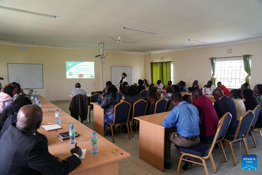 Kenyan trainees observe a seedling in Matangi Tisa Village of Nakuru County, Kenya, on Sept. 18, 2023. (Xinhua/Han Xu)
