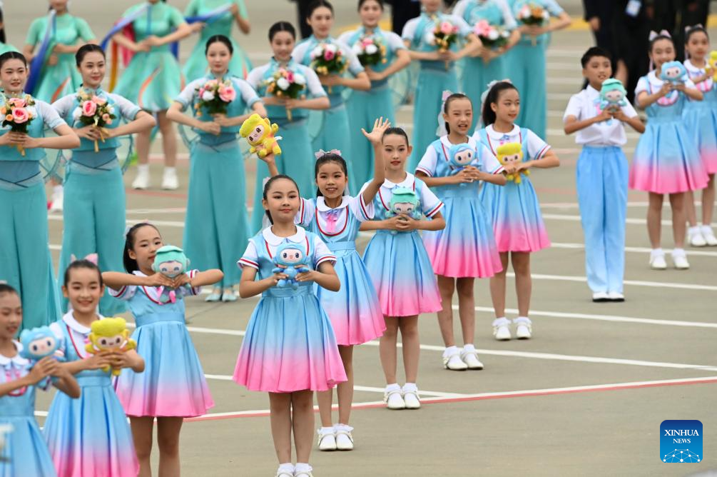A welcoming ceremony is held upon the arrival of Crown Prince of Kuwait Sheikh Mishal Al-Ahmad Al-Jaber Al-Sabah in Hangzhou, capital city of east China's Zhejiang Province, Sept. 21, 2023. Kuwaiti crown prince on Thursday arrived here to attend the opening ceremony of the 19th Asian Games. (Xinhua/Huang Zongzhi)