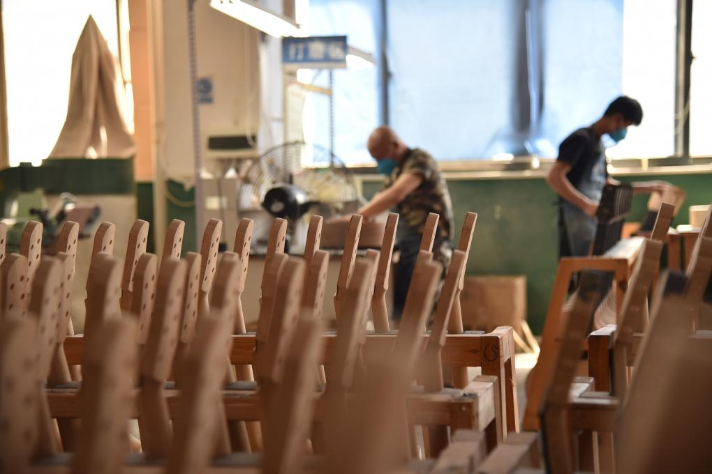 A worker puts a semi-manufactured guitar on a shelf in a workshop of the Zheng'an Guitar Culture Industry Park in Zheng'an County, southwest China's Guizhou Province, March 25, 2020. (Xinhua/Yang Wenbin)