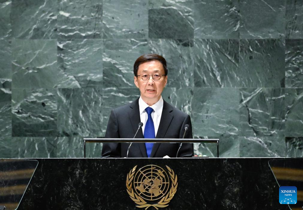 Speaking at the General Debate of the 78th session of UNGA, Han said that UN member states should uphold equity and justice, and safeguard peace and security; pursue mutual benefit, deliver win-win outcomes and achieve development for all; stay open and inclusive, and advance human civilization; and stay true to multilateralism and improve global governance.