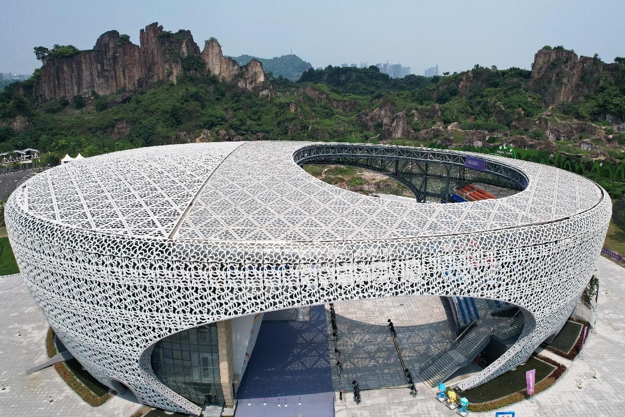 The humanistic touch is also ingrained in the architectural aesthetics of the venues. The Yangshan Sports Climbing Center, located in Keqiao district, Zhejiang's Shaoxing, resembling a silkworm cocoon, is the designated venue for the climbing events of the Hangzhou Asian Games. The hollowed exterior design reflects the silk culture in the Jiangnan water towns, seamlessly integrating elements of Chinese landscapes and international competitions.
