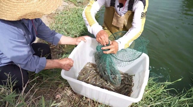 Zhou Jingsen, a shrimp farmer in Aksu, was busy harvesting South American white shrimp on his farm. He mentioned that they have effectively acclimated the tropical shrimp species to freshwater conditions.