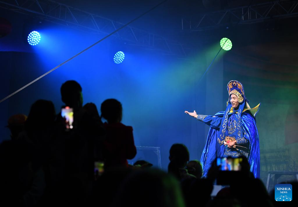 An actor performs during a celebration to mark the upcoming Chinese Mid-Autumn Festival at the Gardens of the World in Berlin, Germany, Sept. 23, 2023. (Xinhua/Ren Pengfei)
