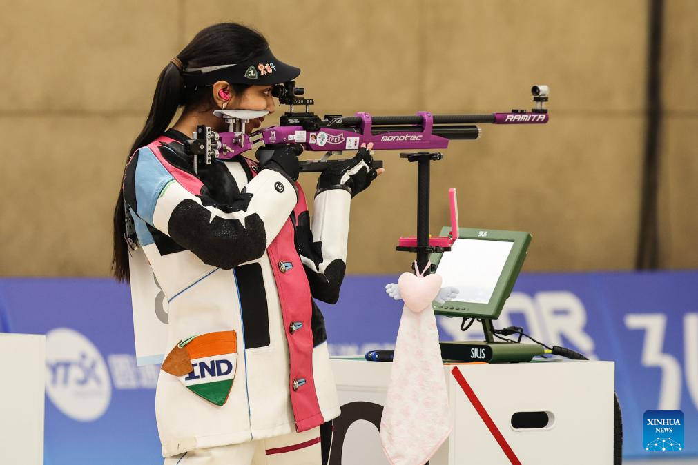 Ramita of India competes during the Shooting 10m Air Rifle Women's Final at the 19th Asian Games in Hangzhou, east China's Zhejiang Province, Sept. 24, 2023. (Xinhua/Shan Yuqi)