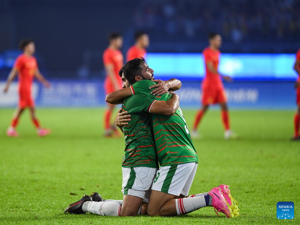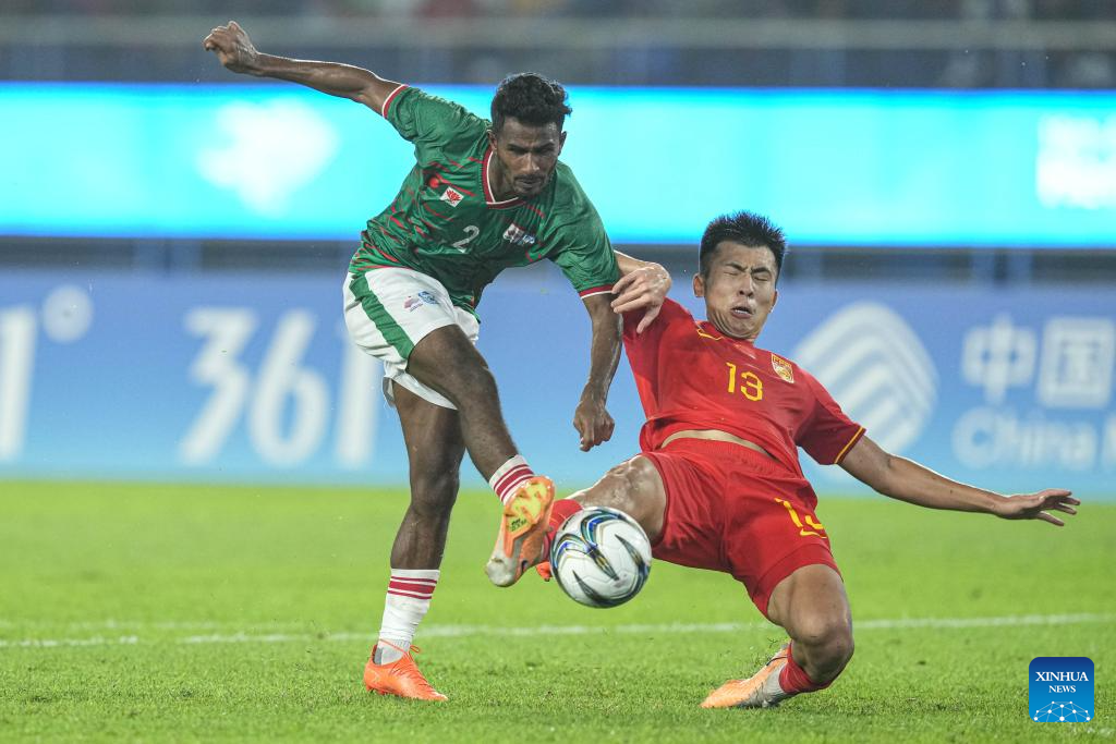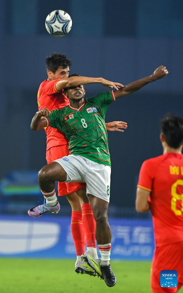 HANGZHOU, Sept. 24 (Xinhua) -- China secured the top spot in their group following a 0-0 draw with Bangladesh in Group A of the Hangzhou Asian Games men's football competition on Sunday.