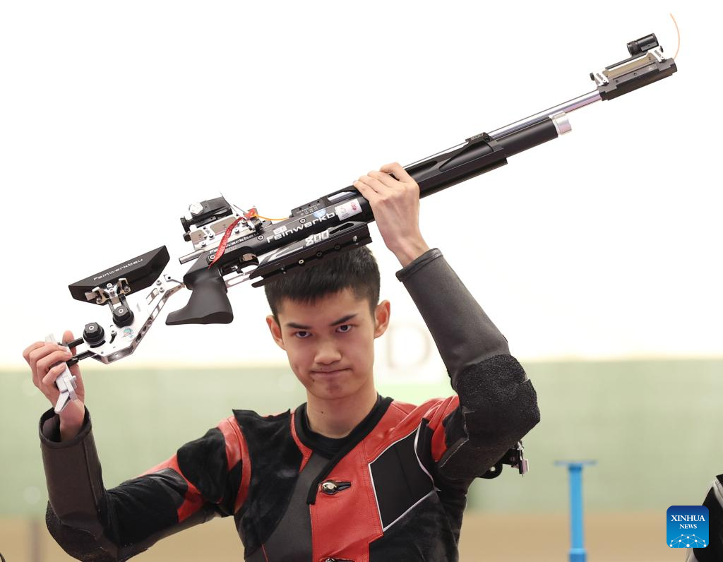 Sheng Lihao of China competes the Men's 10m Air Rifle Final of Shooting at the 19th Asian Games in Hangzhou, east China's Zhejiang Province, Sept. 25, 2023. (Xinhua/Jia Haocheng)
