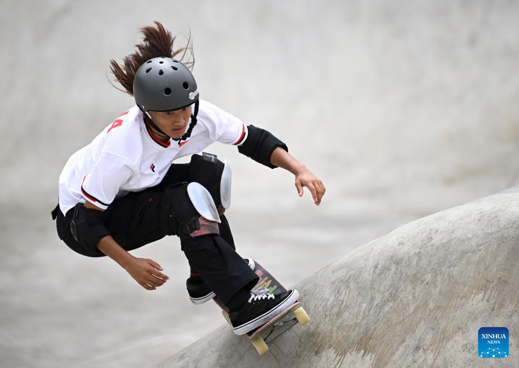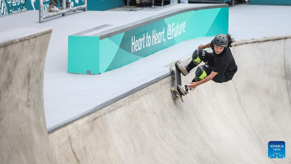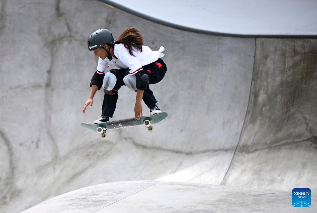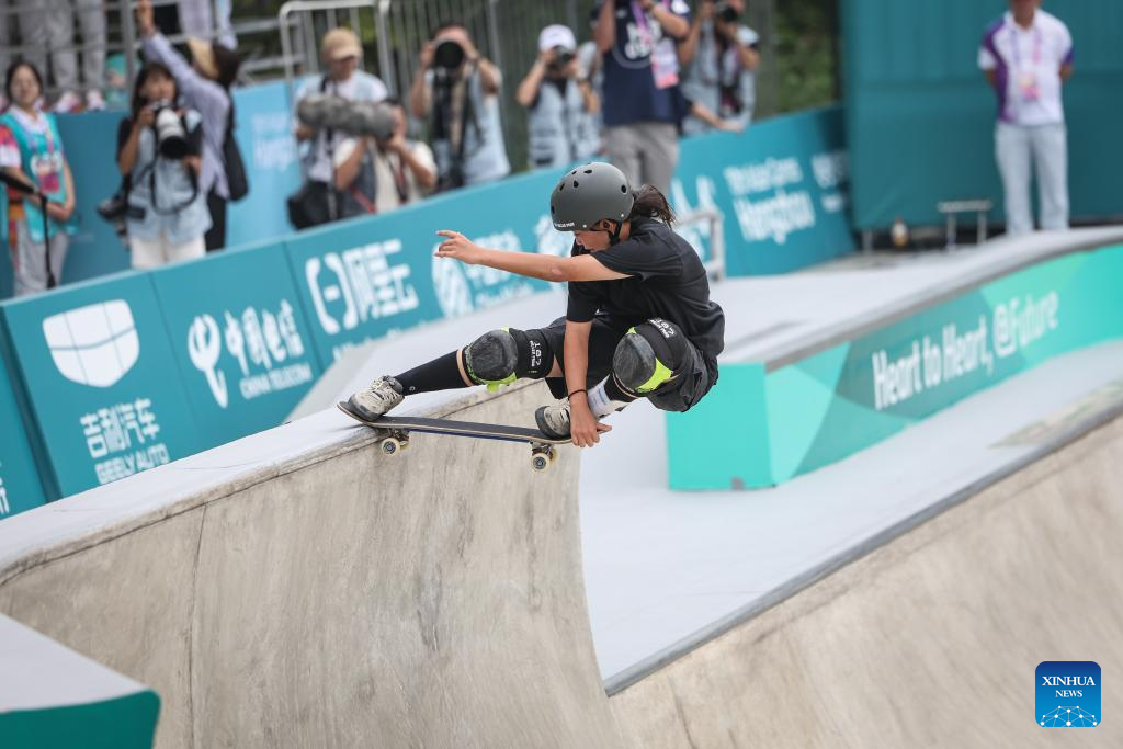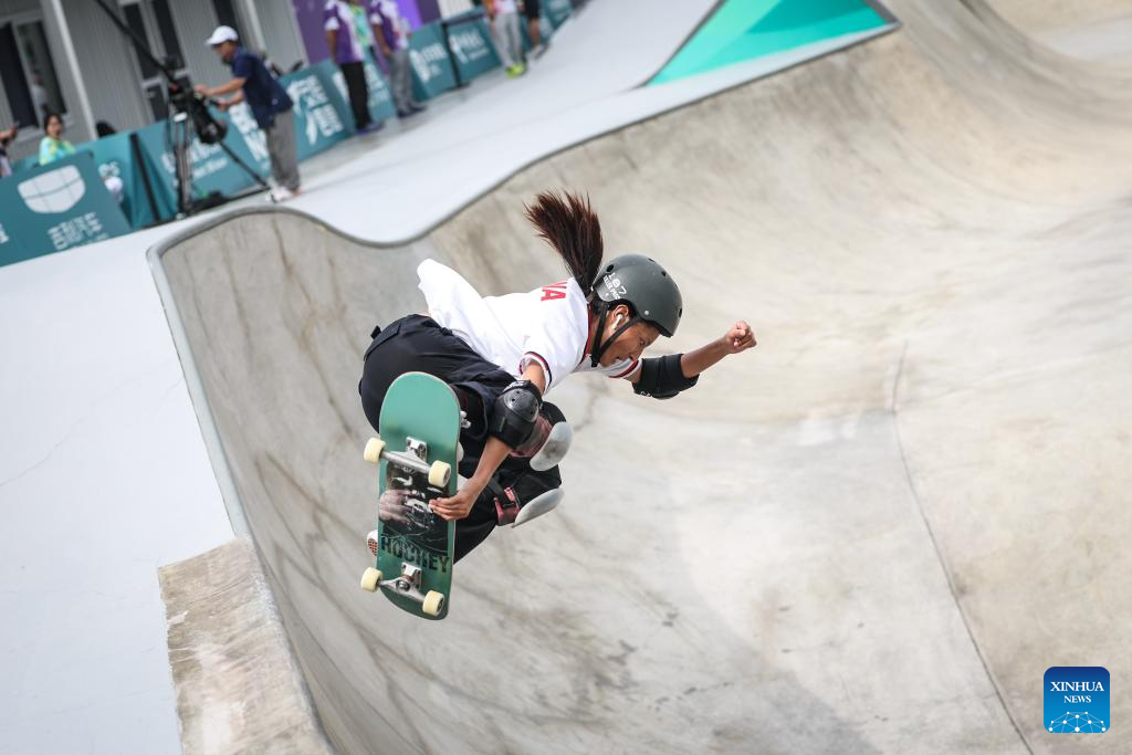 Kusaki Hinano of Japan competes during the Women's Park Final of Skateboarding at the 19th Asian Games in Hangzhou, east China's Zhejiang Province, Sept. 25, 2023. (Xinhua/Song Yanhua)
