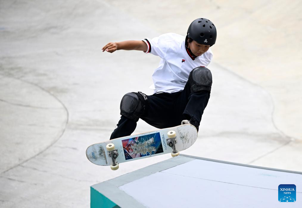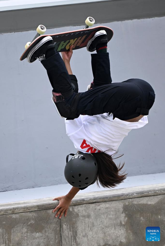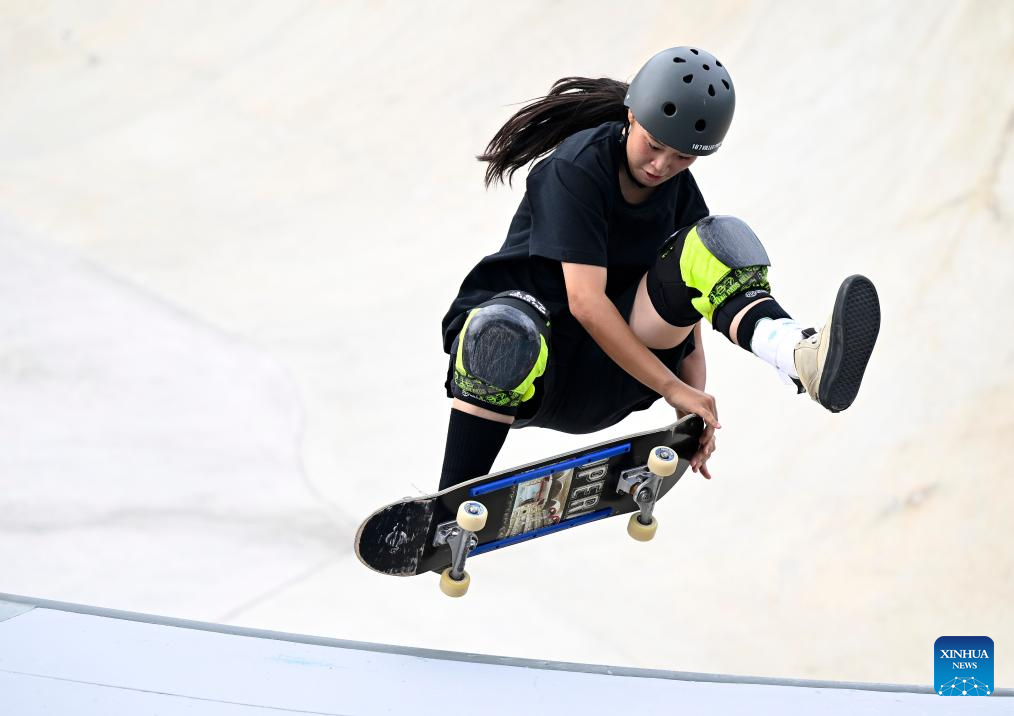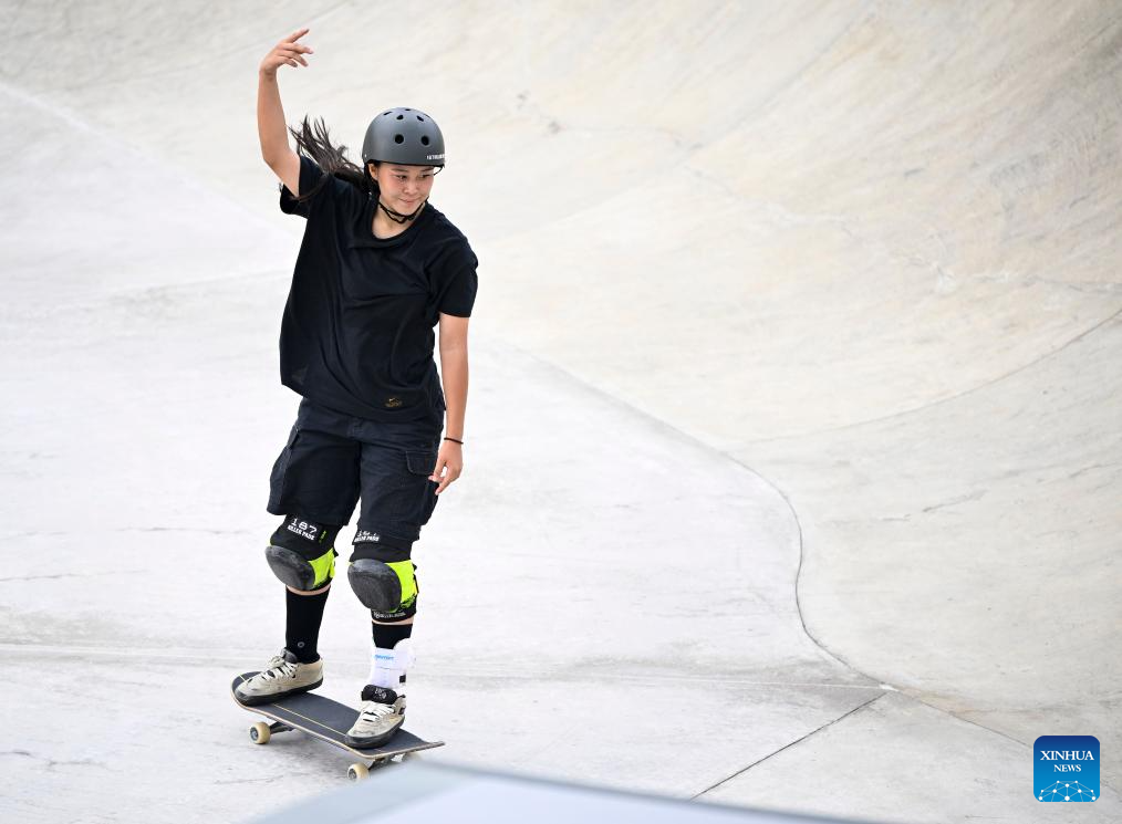 Kusaki Hinano of Japan competes during the Women's Park Final of Skateboarding at the 19th Asian Games in Hangzhou, east China's Zhejiang Province, Sept. 25, 2023. (Xinhua/Song Yanhua)
