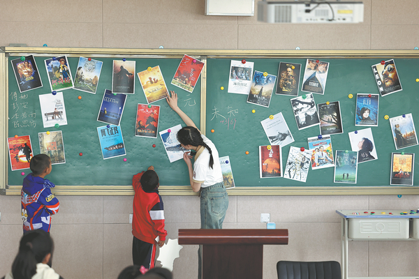 The class is part of a nonprofit project called Taking Movies to the Countryside — College Students Support Art Education in the New Era. Launched by Beijing Normal University in 2021, the program aims to encourage college students to volunteer during their vacations in remote areas and give art and culture classes to local children, using classic movies as one of the main teaching materials.