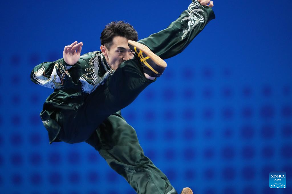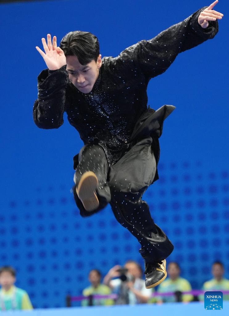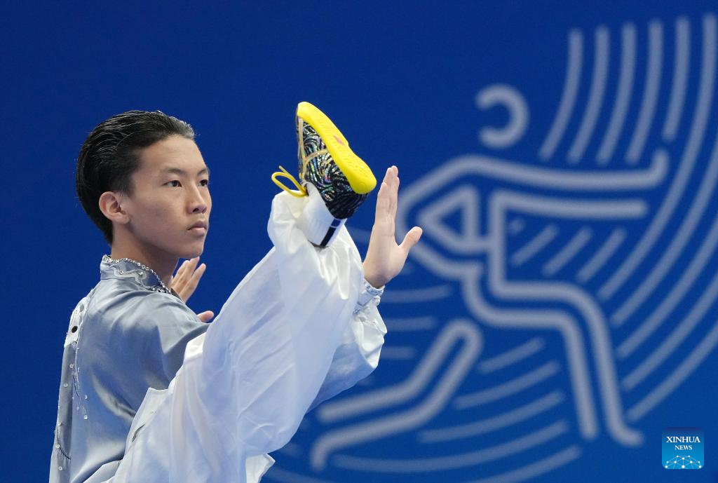 Nicholas Nicholas of Indonesia competes during the Men's Taijiquan Final of Wushu at the 19th Asian Games in Hangzhou, east China's Zhejiang Province, Sept. 25, 2023. Men's Taijiquan & Taijijian All-Round of Wushu took place here Monday. (Xinhua/Li Yibo)