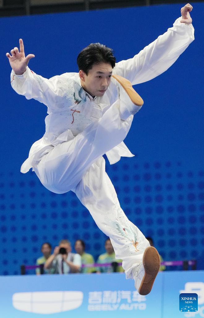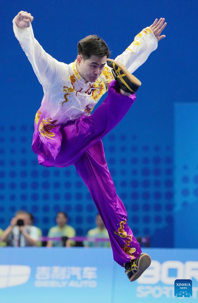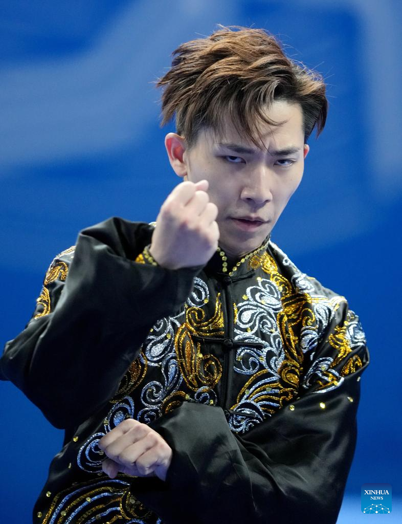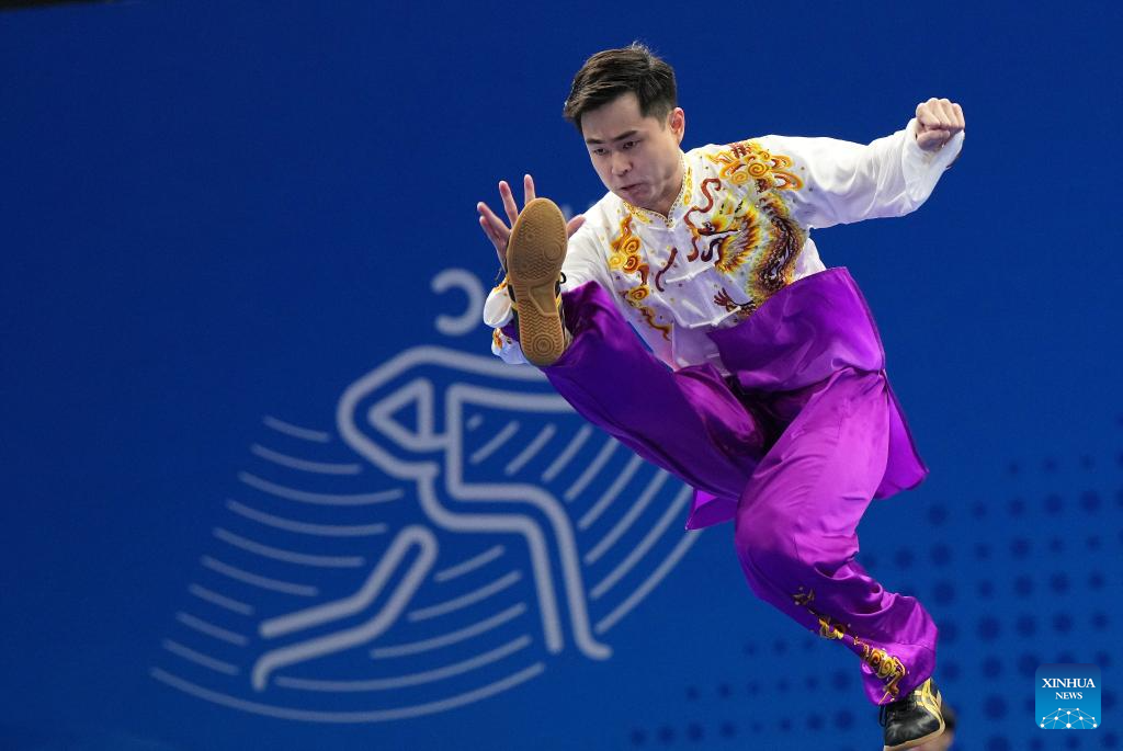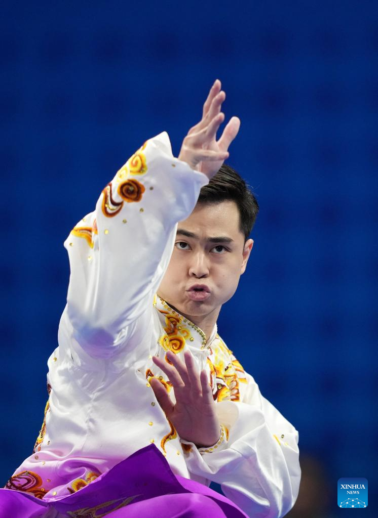 Hui Tak Yan Samuei of China's Hong Kong competes during the Men's Taijiquan Final of Wushu at the 19th Asian Games in Hangzhou, east China's Zhejiang Province, Sept. 25, 2023. Men's Taijiquan & Taijijian All-Round of Wushu took place here Monday. (Xinhua/Li Yibo)