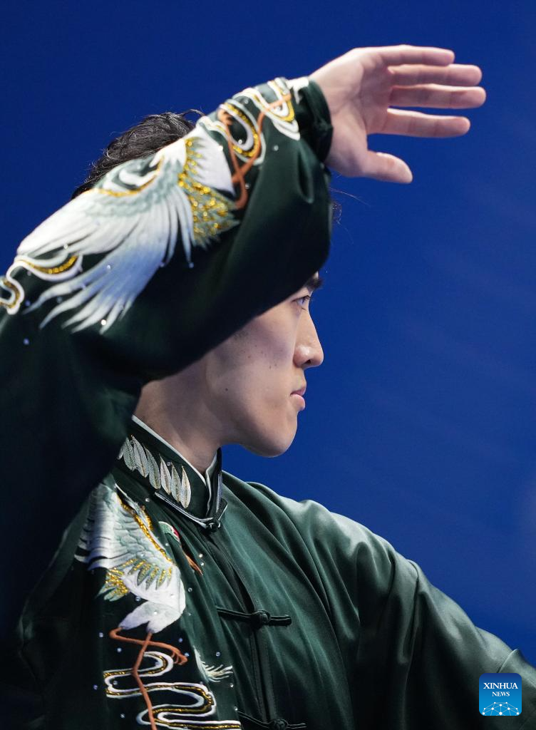 Araya Tomohiro of Japan competes during the Men's Taijiquan Final of Wushu at the 19th Asian Games in Hangzhou, east China's Zhejiang Province, Sept. 25, 2023. Men's Taijiquan & Taijijian All-Round of Wushu took place here Monday. (Xinhua/Li Yibo)