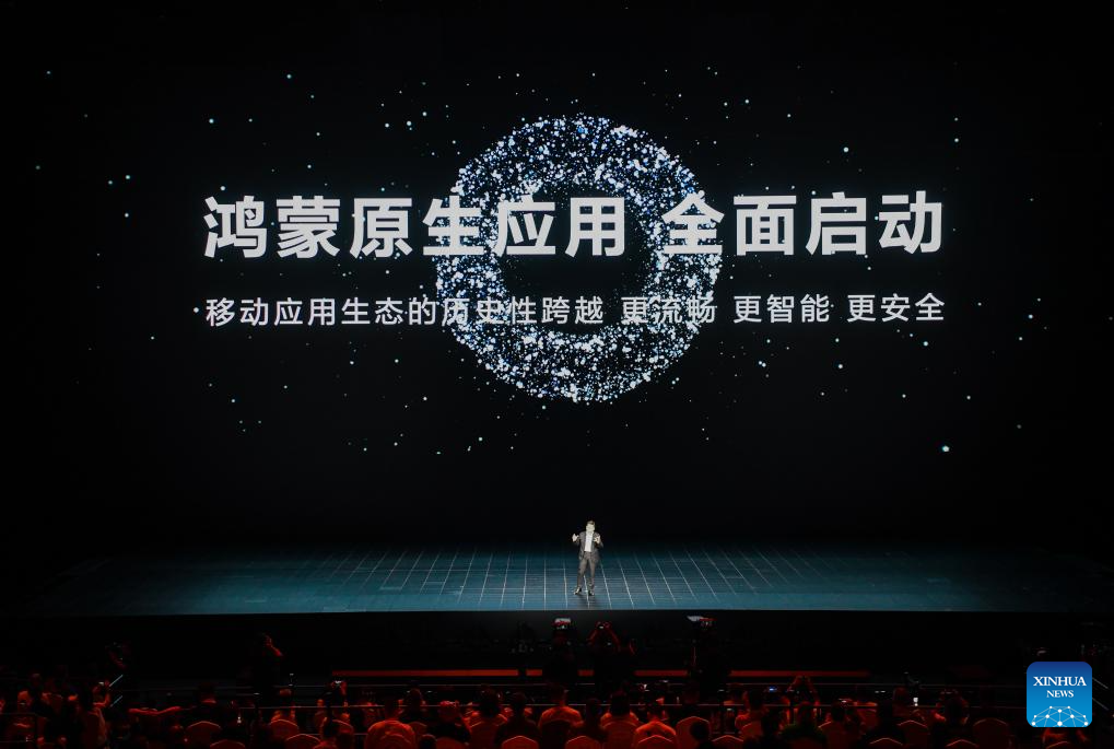 HarmonyOS NEXT is released at a product launch event of Huawei in Shenzhen, south China's Guangdong Province, Sept. 25, 2023. Chinese telecom giant Huawei held a product launch event on Monday in Shenzhen. (Xinhua/Liang Xu)