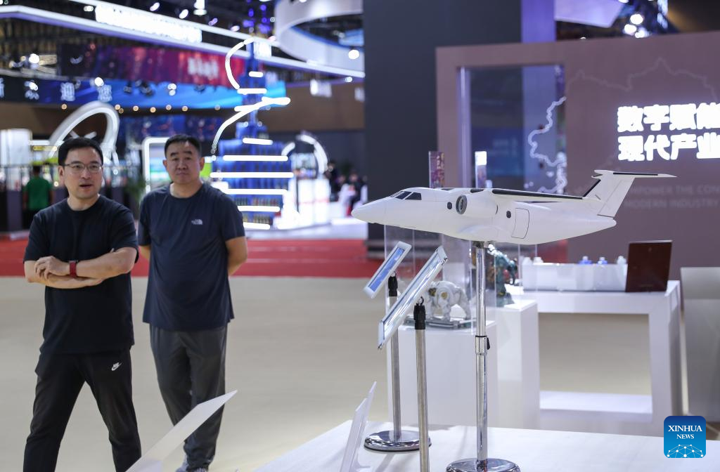 People visit an exhibition during the 2023 Liaoning International Fair of Investment and Trade in Shenyang, northeast China's Liaoning Province, Sept. 25, 2023. The 2023 Liaoning International Fair of Investment and Trade kicked off here on Monday. Themed on jointly promoting new breakthroughs in revitalization and sharing new opportunities for development, this year's fair includes forums, exhibitions and business cooperation and promotion activities. (Xinhua/Long Lei)